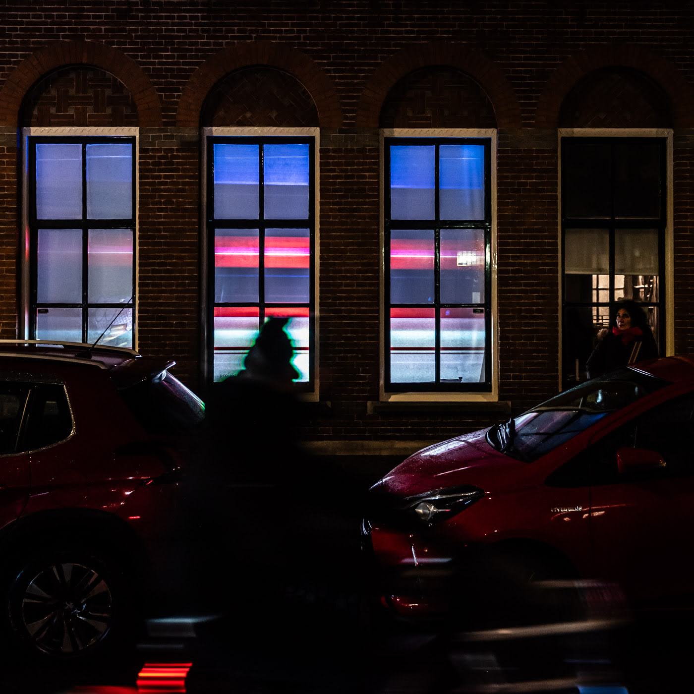 Photos from Sleepy Eyes Film Festival 6-14 February in Westeinde, The Hague, my work "Business" was screened in the windows of Westeinde 58.