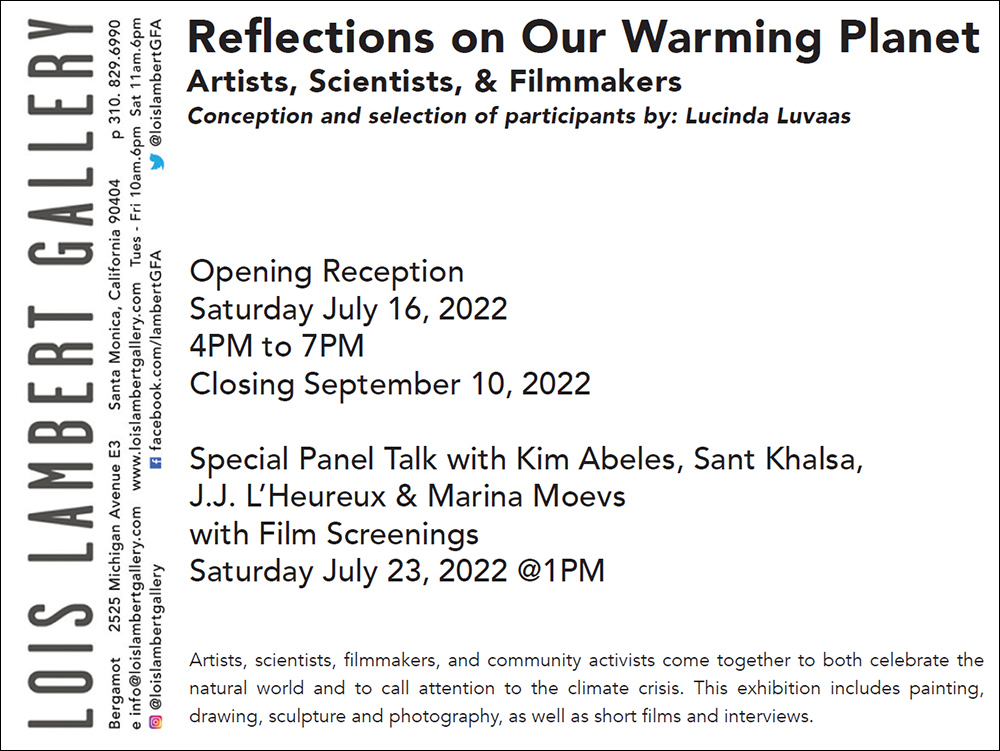 Visit https://www.loislambertgallery.com/reflections-on-our-warming-planet for more information and press release
